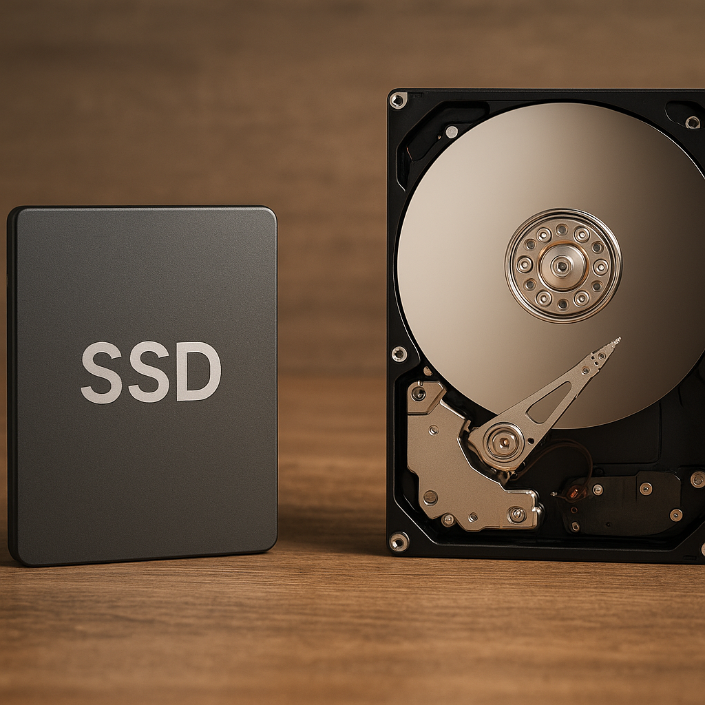 - HDD (Hard Disk Drive) – tradycyjne dyski talerzowe, tańsze przy dużych pojemnościach, ale wolniejsze w dostępie do plików.